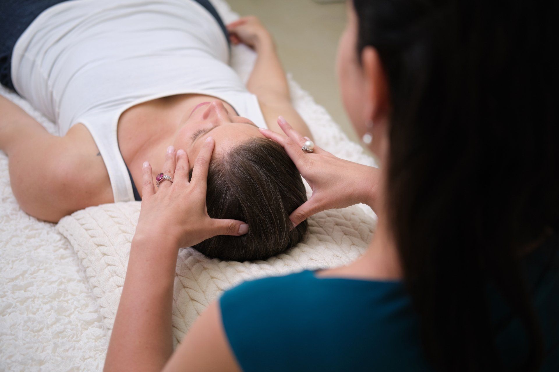 Une séance se passe sur une table de soin en position allongée.