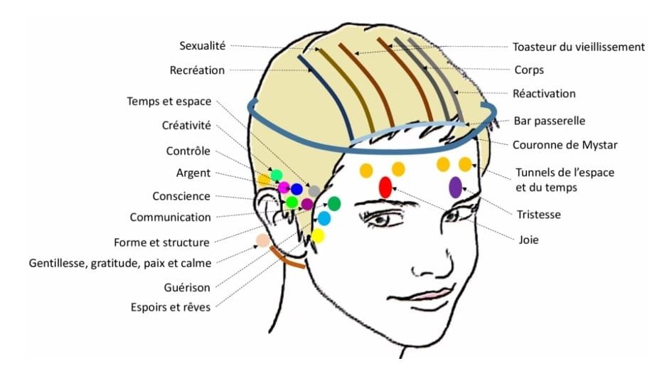 qui par l’apposition des doigts va permettre l’activation de ces différentes barres, ce qui fera remonter et libérer vos pensées, croyances, émotion qui seront cristallisés dans votre corps. Un léger toucher sur 32 points spécifiques, au niveau du crâne, de part et d’autre de la tête, active 16 barres d’énergie
